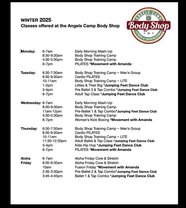 Join Krista Cruff from Starki's Travel Gymnastics and Tumbling on Saturday, November 8th and Saturday, November 22nd at the Angels Camp Body Shop.
